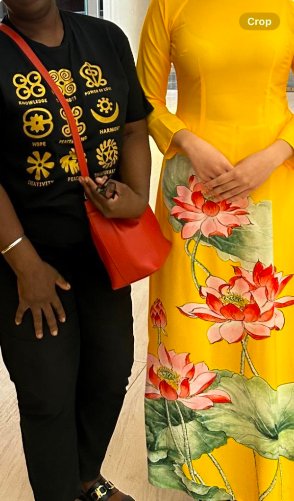 My colleague encouraged me to take a photograph with one of the ushers wearing a traditional outfit, which had the lotus flower printed on it. I have learned that the lotus flower is an important symbol of Vietnam.
